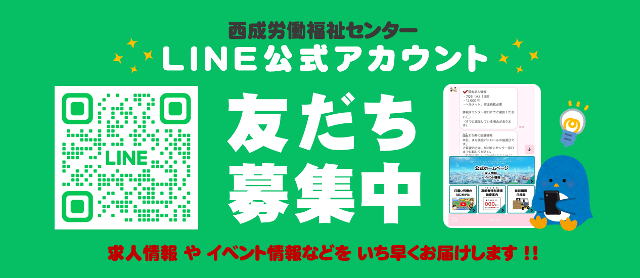 RIAP5458-scaled-2西成労働福祉センター-LINE公式アカウント 2月27日(金)現在の総求人数164件 期間から探す期間を指定 雇用期間▾ 1日間 (53) 2日間 (1) 5日間 (5) 10日間 (39) 2週間 (7) 15日間 (6) 20日間 (4) 30日間 (10) 31日間 (2) 1ヶ月間 (1) 2ヶ月間 (3) 1年間 (3) 期間の定めなし (30) 職種から探す職種を指定 職種▾ 建設 (140) 一般土工 (92) 運転手兼一般土工 (19) 運転手兼土木作業員 (2) 解体工 (5) 解体手元 (3) 重機オペレーター (4) 重機オペレーター兼一般土工 (1) 現場作業員 (1) 鳶工 (3) 鉄筋工 (2) カジ工 (1) 建築施工管理 (1) 土木作業員 (1) 土木・建築作業員 (1) 舗装作業員 (1) 運転手 (1) 造園作業 (1) 現場スタッフ (1) 現場作業及び管理補助 (1) 警備 (16) 警備員 (12) 交通誘導警備 (2) ガードマン (1) 守衛 (1) 清掃 (2) ビル・建物清掃員 (1) 乗物洗浄・清掃員 (1) 物流・倉庫・軽作業 (2) 施設内作業 (1) ピオーネの栽培・管理 (1) 製造・工場内作業 (1) 工場内作業 (1) 産業廃棄物処理業 (2) 場所から探す場所を指定 就業場所▾ 関西地方 (155) 近畿一円 (2) 京阪神間 (2) 阪神間 (21) 大阪府 (99) 大阪市 (14) 住之江区 (3) 大正区 (3) 中央区 (1) 西区 (1) 西成区 (1) 東住吉区 (2) 吹田市 (2) 枚方市 (1) 箕面市 (1) 兵庫県 (8) 伊丹市 (1) 滋賀県 (17) 京都府 (20) 京都市 (4) 奈良県 (5) 和歌山県 (2) 関東地方 (1) 千葉県 (1) 東海地方 (5) 愛知県 (1) 三重県 (4) 四国地方 (1) 愛媛県 (1) 中国地方 (2) 岡山県 (2) 形態から探す形態を指定 求人形態▾ 現金求人 (55) 契約求人 (62) 一般求人 (46) 出張求人 (1) フリーワード NEWSアーカイブ 2026.02.10 急募求人 【警備員】急募の求人があります! 2026.02.02 更新案内 月初求人(令和8年2月度)の165件を更新しました 2025.08.06 更新案内 新規機能を追加しました 2025.08.01 更新案内 新規事業者 2023.09.01 イベント LINEで最新情報を確認ください PICK UP事業者一覧 新成開発㈱ ㈱J.仁鷹 林建業 ㈱ミヤビ技建 医療法人 港南会 (株)オールワン ㈱三共開発 神田興業 ㈱クリーンパートナー ㈱若宮土木興業 新成開発㈱京都営業所 新和建設㈱ 西淀川 国宝興業 明和開発(株) セイエー建設 雇用期間から探す 1日間53件2日間1件5日間5件10日間39件2週間7件15日間6件20日間4件30日間10件31日間2件1ヶ月間1件2ヶ月間3件1年間3件期間の定めなし30件 職種から探す 建設140件警備16件清掃2件物流・倉庫・軽作業2件製造・工場内作業1件産業廃棄物処理業2件 求人形態から探す 現金求人55件契約求人62件一般求人46件出張求人1件 就業場所から探す 関西地方155件 近畿一円2件 京阪神間2件 阪神間21件 大阪府99件 兵庫県8件 滋賀県17件 京都府20件 奈良県5件 和歌山県2件 関東地方1件 千葉県1件 東海地方5件 愛知県1件 三重県4件 四国地方1件 愛媛県1件 中国地方2件 岡山県2件 より詳細な探し方へ